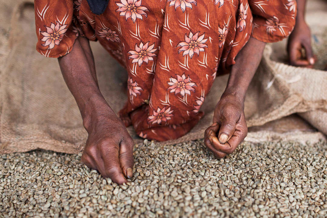 Los caficultores etíopes han procesado el café Arábica más tiempo que en ningún otro lugar del mundo, lo que significa que son excepcionalmente buenos en ello. Después de recolectar y seleccionar las cerezas de café maduras, los agricultores las extienden en capas muy finas sobre patios o “camas africanas” elevadas para que se sequen al aire libre, a pleno sol, cubriéndolas durante la noche para evitar que absorban la humedad nocturna. Para garantizar un secado uniforme, las cerezas se revuelven a mano metódicamente o se rastrillan. Solo cuando la cereza está completamente seca se puede trillar para separar la cáscara del grano.